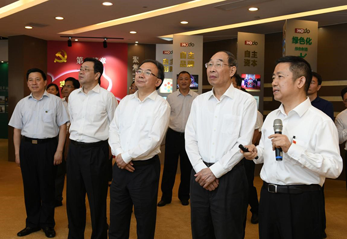 7月10日,中共中央書記處書記、中央統(tǒng)戰(zhàn)部部長尤權(quán)來錫,深入民營企業(yè)調(diào)研非公經(jīng)濟發(fā)展情況。他強調(diào),要堅持以習(xí)近平新時代中國特色社會主義思想為指引,把鼓勵、支持、引導(dǎo)民營經(jīng)濟發(fā)展的政策落地落實,促進非公有制經(jīng)濟持續(xù)健康發(fā)展。省委常委、省委統(tǒng)戰(zhàn)部部長楊岳,省委常委、市委書記李小敏參加調(diào)研。當(dāng)日下午,尤權(quán)來到紅豆集團,先后參觀了紅豆黨建館、紅豆男裝智慧門店、紅豆工業(yè)城、紅豆杉盆景育苗大棚等地。在紅豆黨建館,紅豆集團黨委書記、董事局主席兼CEO周海江向尤權(quán)介紹了紅豆創(chuàng)立現(xiàn)代企業(yè)制度+企業(yè)黨建+社會責(zé)任“三位一體”的中國特色現(xiàn)代企業(yè)制度,及企業(yè)黨建成果、企業(yè)發(fā)展等情況。