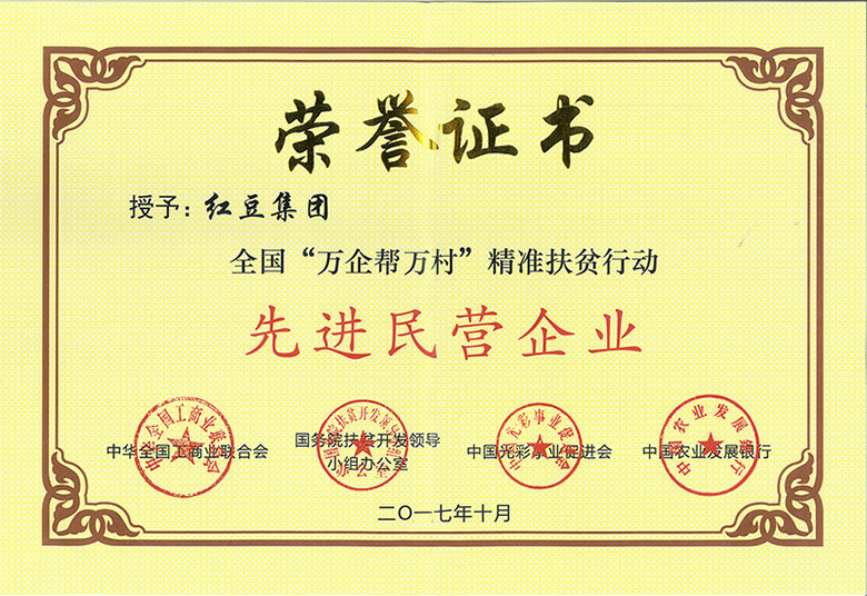 統(tǒng)籌共建,“輸血”扶貧。2014年6月,紅豆集團與11個地處西部山區(qū),經(jīng)濟落后的紅豆村簽訂統(tǒng)籌共建協(xié)議,促進紅豆村在黨建、經(jīng)濟、文化工作全面發(fā)展;2017年4月,紅豆集團與經(jīng)濟薄弱村徐州豐縣首羨鎮(zhèn)三官廟村開展“城鄉(xiāng)結(jié)對、文明共建”活動,助推高水平全面小康建設(shè);2017年8月,在“中國光彩事業(yè)涼山行”活動中,紅豆集團向涼山地區(qū)捐贈200萬元,為四川老區(qū)群眾脫貧攻堅貢獻一份力量;2018年6月,紅豆集團向江蘇民營企業(yè)決勝全面小康社會精準扶貧基金捐資,為打贏脫貧攻堅戰(zhàn)再出力。2017年10月,紅豆集團榮獲全國“萬企幫萬村”精準扶貧行動先進民營企業(yè)。