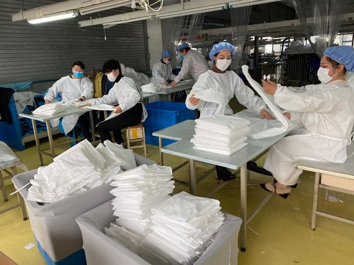 從同事們那里,我們了解到,在紅豆的這場(chǎng)戰(zhàn)“疫”中,其實(shí)戴總身先士卒,立下了汗馬功勞,不愧一位“巾幗先鋒”。上上下下,在危險(xiǎn),最危急的時(shí)候,她親自去跑批文,跑材料,跑設(shè)備,跑技術(shù),跑審批,跑市場(chǎng)。