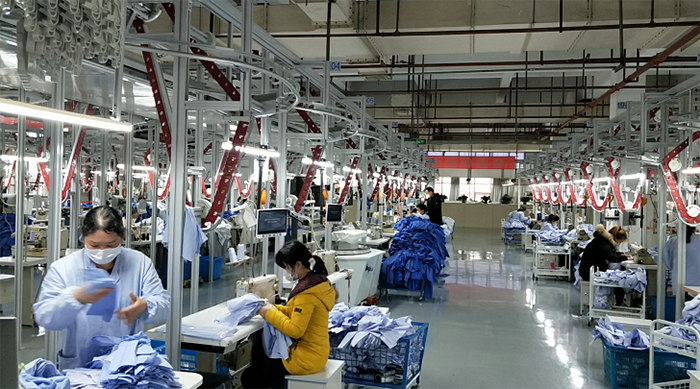 在協(xié)調(diào)好防護(hù)服生產(chǎn)的同時,徐亞東也在快速恢復(fù)他原來的本職工作。據(jù)他介紹,目前襯衫廠復(fù)工人員已經(jīng)達(dá)到230人,復(fù)工率恢復(fù)至85%,基本不會對生產(chǎn)造成影響。人員、機(jī)器就位,流水線正常運轉(zhuǎn),在徐亞東的帶領(lǐng)下,襯衫廠已經(jīng)進(jìn)入全面復(fù)產(chǎn)狀態(tài),讓他感到欣慰的是,疫情沒有影響職工的工作熱情,工廠生產(chǎn)效率不降,質(zhì)量不減。