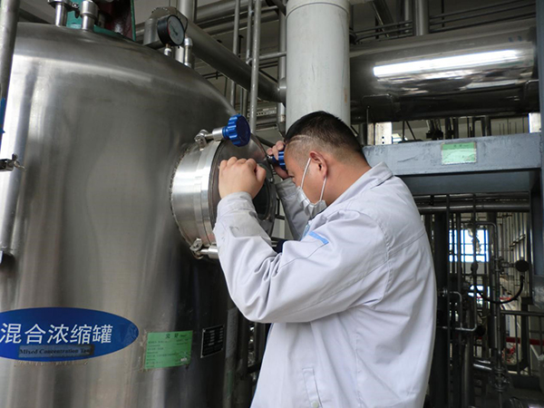 廠區里雖然進出車輛得到嚴格管控,也無閑人走來走去。但公司原料藥二廠車間卻是另外一番景象,身穿無菌工作服的工人們正忙得熱火朝天、不亦樂乎,操控設備、記錄參數、一絲不茍的混料加料,原料藥二廠工人們有條不紊操作下,正開足馬力運轉,保障受疫情影響的訂單順利完成。