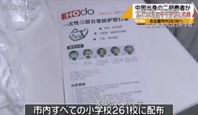 “這是我日本友人發(fā)來的視頻,紅豆口罩上了日本電視,而且還有紅豆LOGO的特寫鏡頭”紅豆外貿(mào)經(jīng)理在電話連線中介紹。據(jù)小編進(jìn)一步了解,原來是昨日日本名古屋電視中播了一則新聞:上午,中國出身的藝術(shù)大學(xué)教授、二胡演奏家張斌,給日本名古屋的小學(xué)捐贈(zèng)了2萬枚紅豆生產(chǎn)的愛心口罩,發(fā)放給名古屋市內(nèi)261所學(xué)校,讓學(xué)生們可以安心的參加畢業(yè)式。愛心捐贈(zèng)受到了日本中京電視臺(tái)的關(guān)注,媒體特別進(jìn)行了采訪報(bào)道,受到捐贈(zèng)的學(xué)校相關(guān)人員表示“十分感謝為孩子們準(zhǔn)備了店里已經(jīng)脫銷的口罩!”